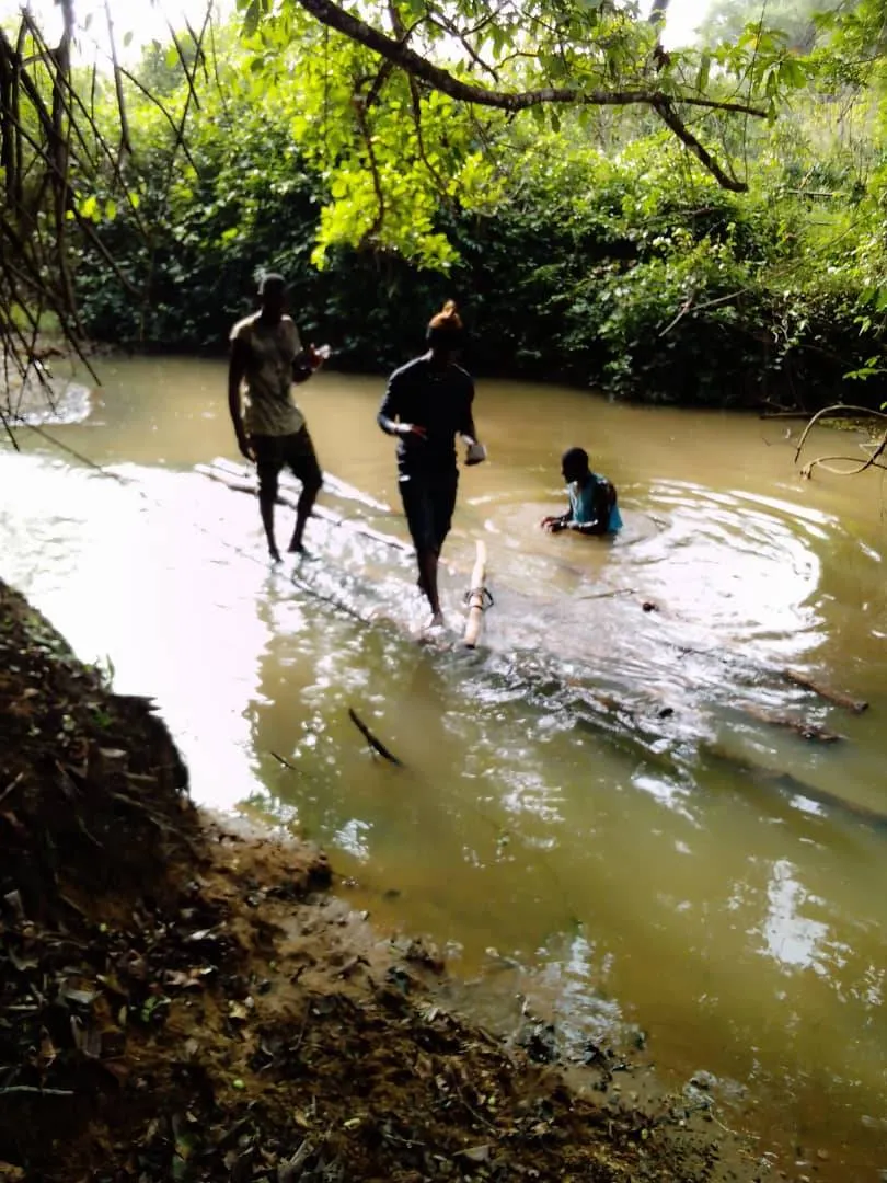 The best thinned teak trunks from block G3 (Maloure) are now stored in the water waiting to be sawn (March 26, 2021)