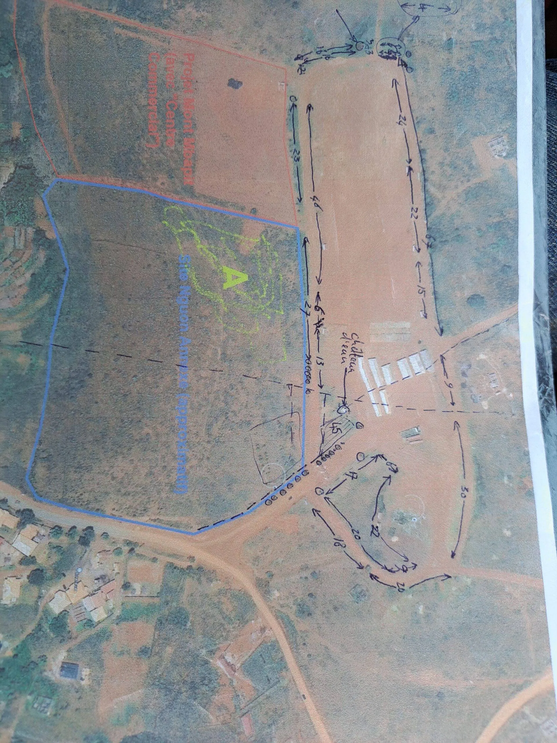 Google photo of Nguon Site, showing position and numbers of MINFOF trees (plus high-voltage wiring above the site - Foumban; June 17, 2024)