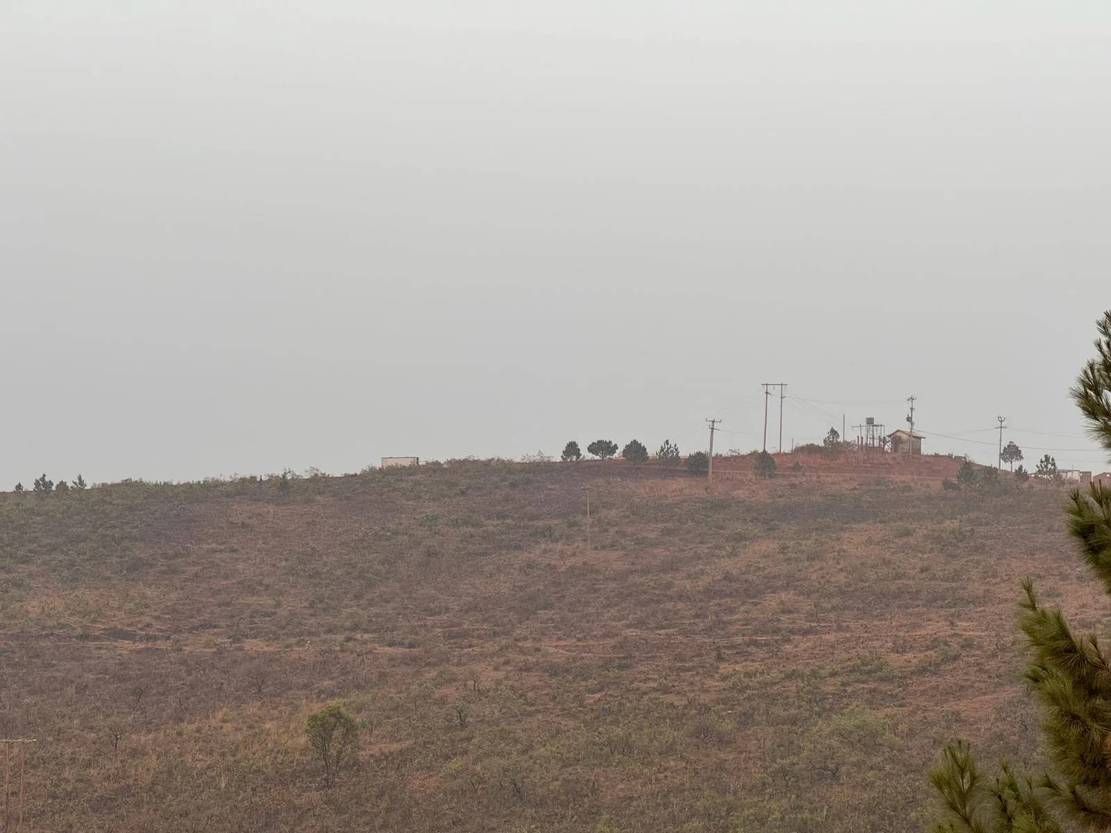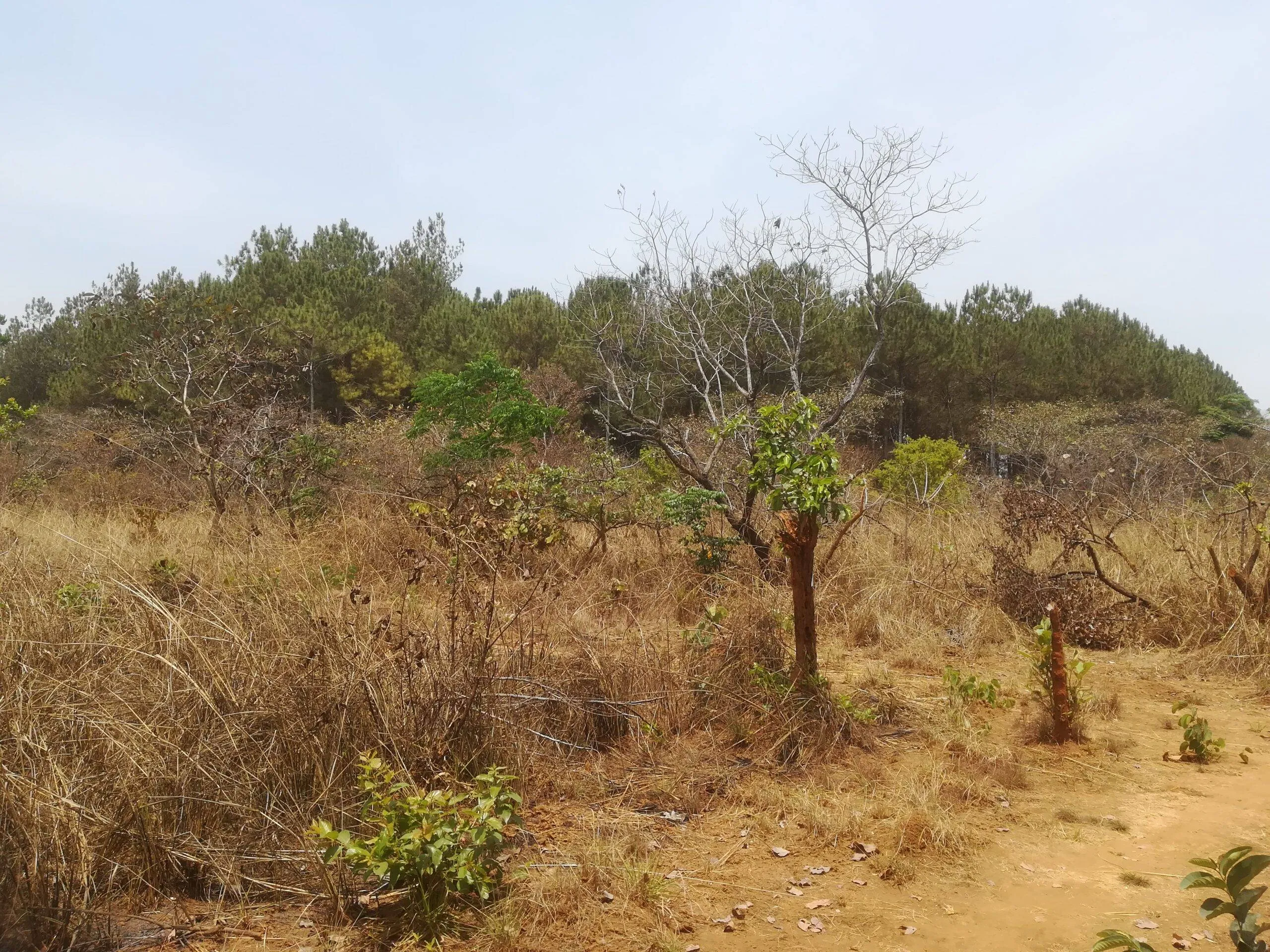 Dry season in Maloure: in the background an older pine (Pinus spp.) plantation (February 24, 2022)