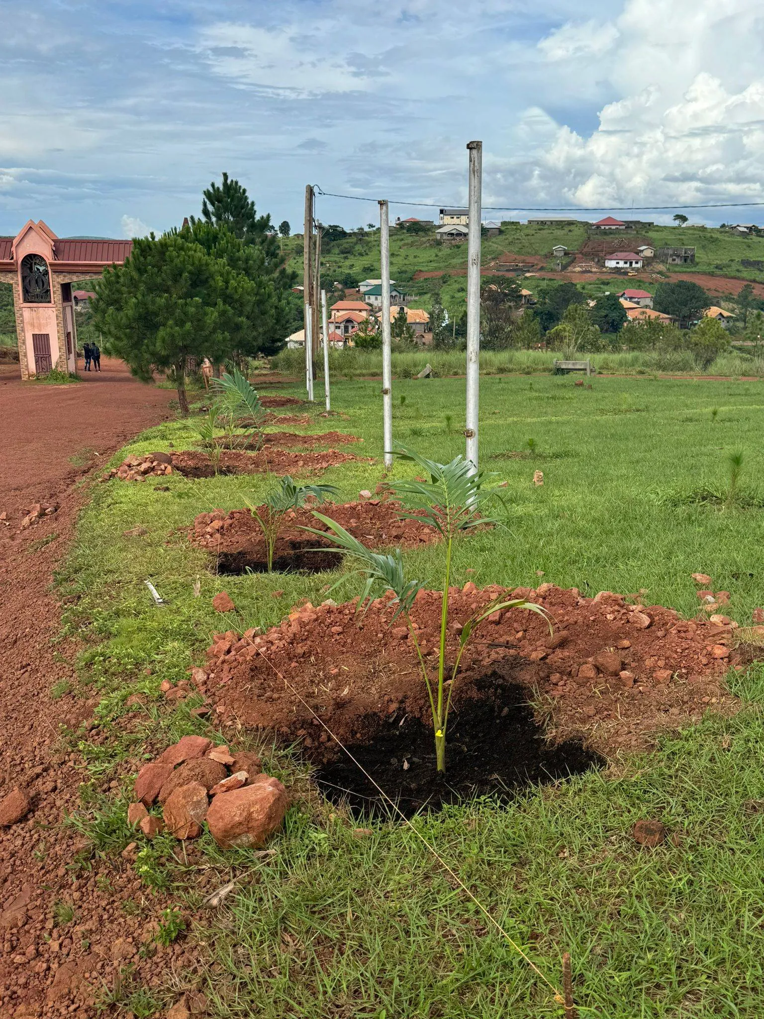 Newly planted palms along the driveway of Nguon Site (July 28, 2024)