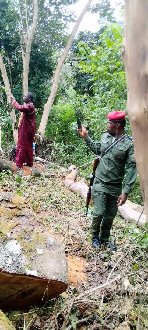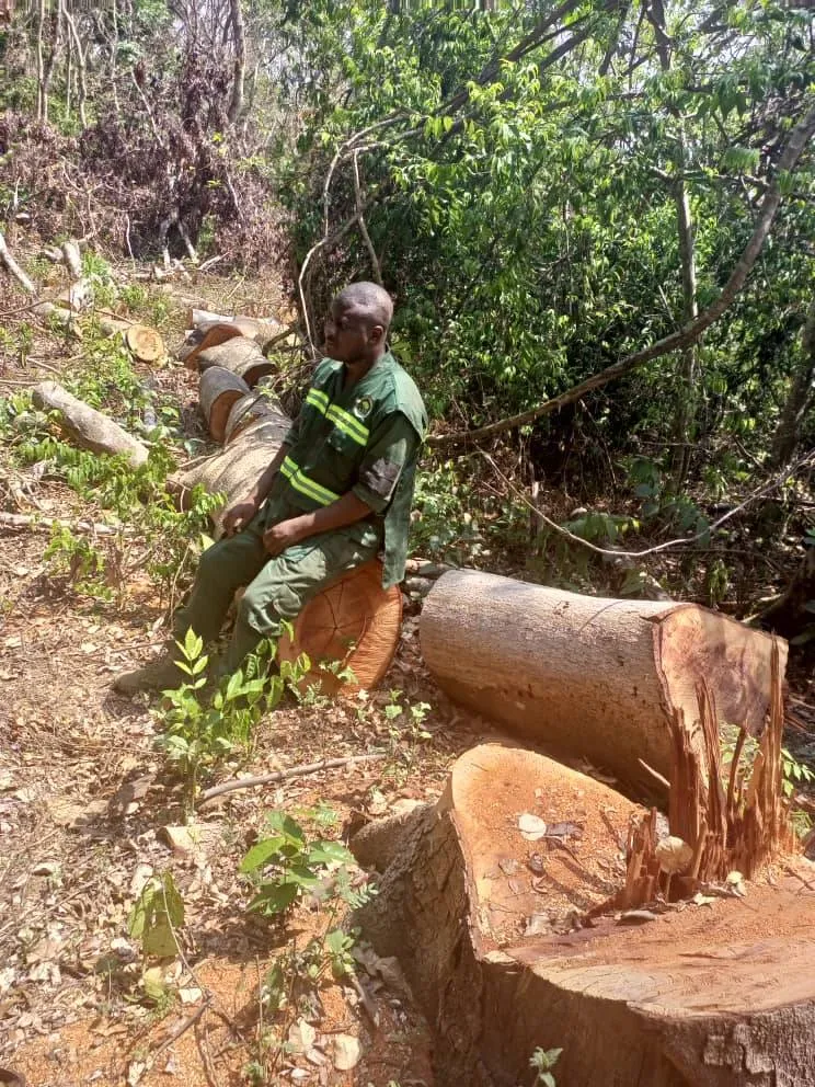 The damage from the latest illegal logging is recorded by agents of the Ministry of Forestry (MINFOF - Maloure; February 6, 2023)