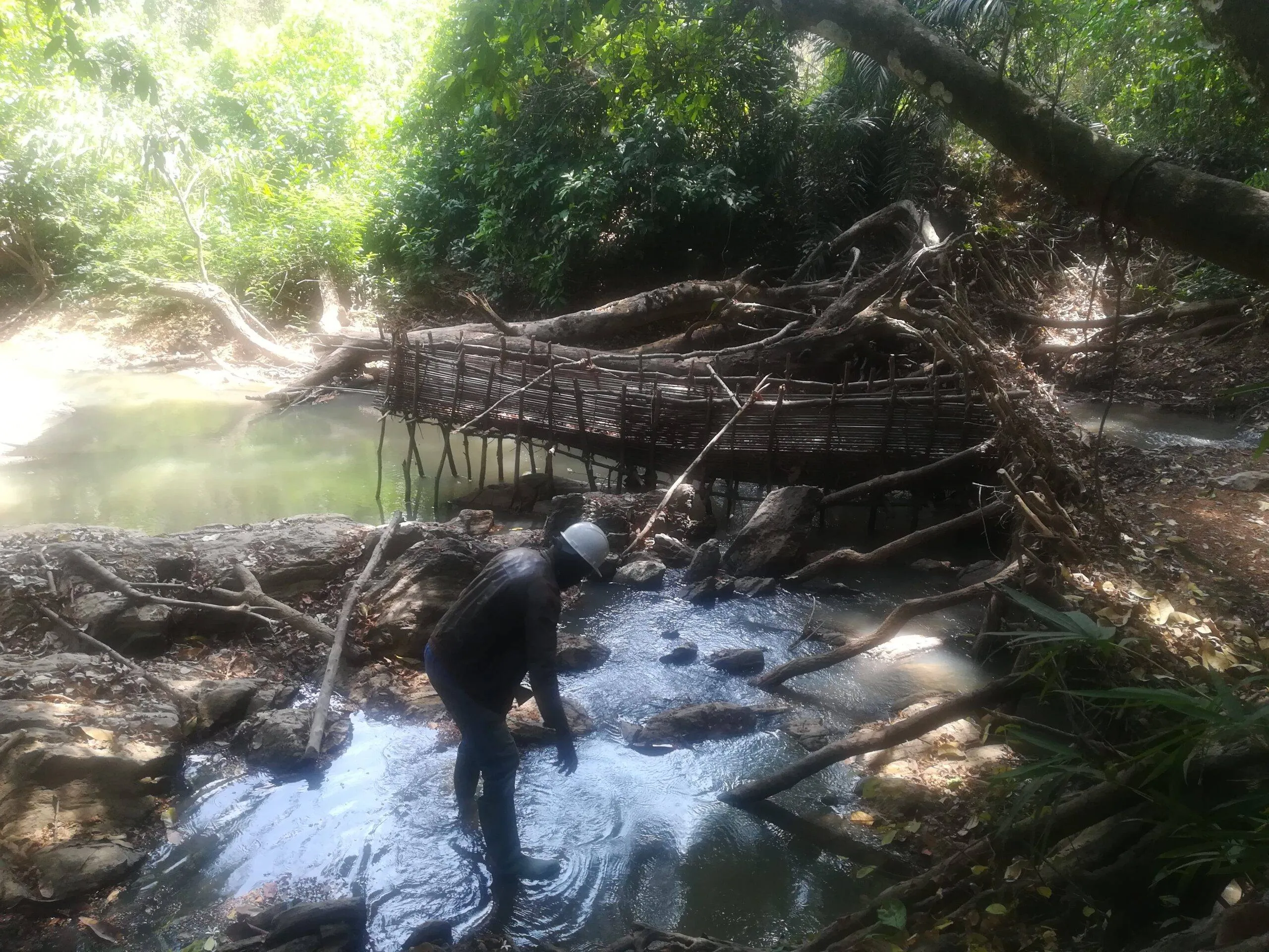 In Loure river (Maloure), residents build a dam with a fish trap every year during the dry season (February 18, 2022)