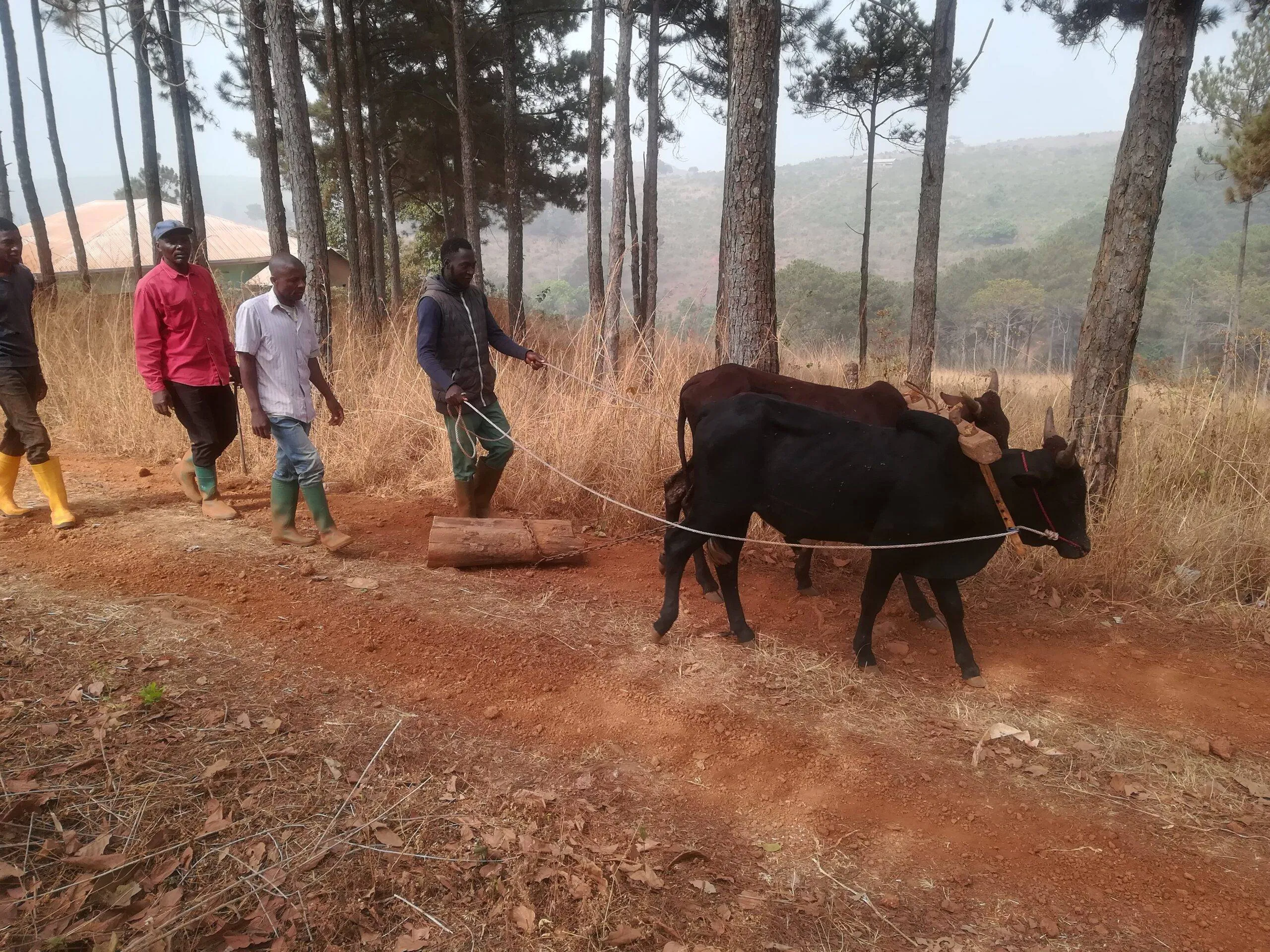 CEFAN: our draft oxen practice dragging a piece of wood (Foumban; February 22, 2022)