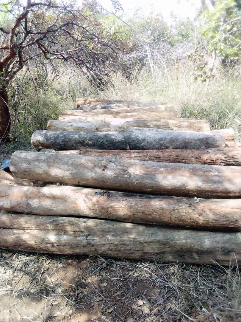 Thinned teak trunks are collected (Maloure; January 19, 2022)