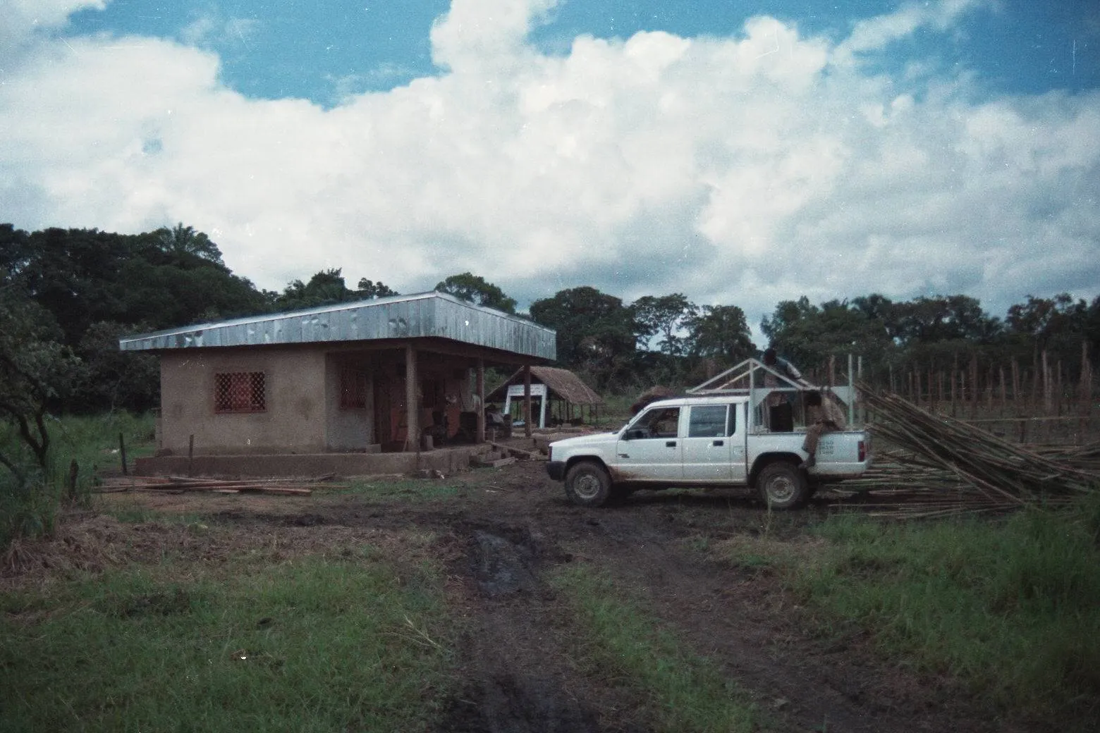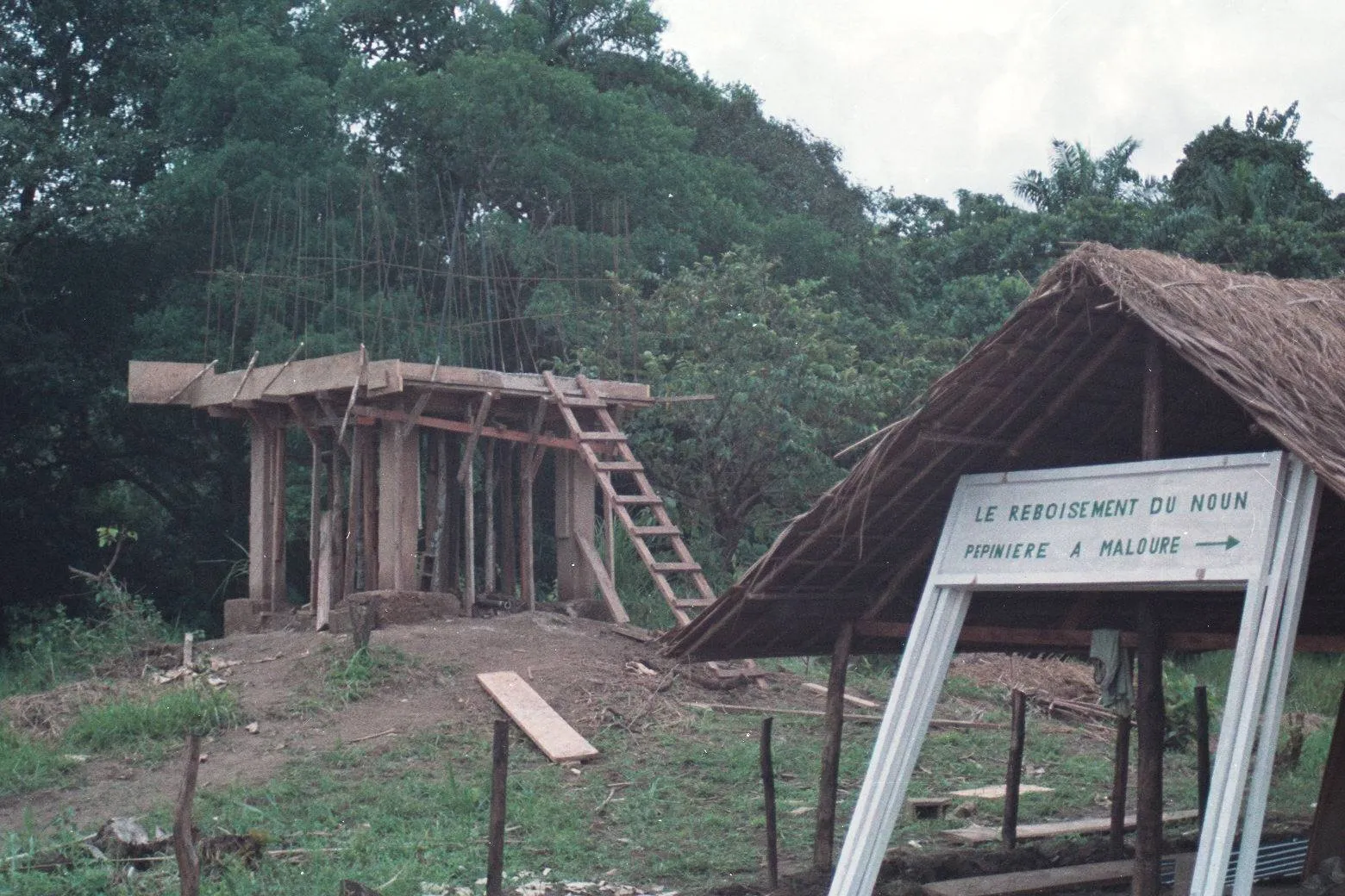A large shade roof is being built with bamboo for Maloure tree nursery (September 23, 1996)