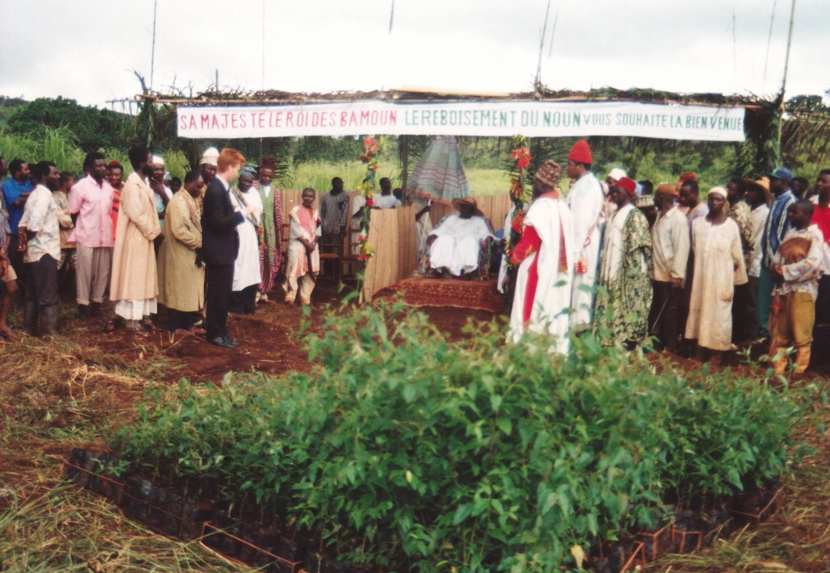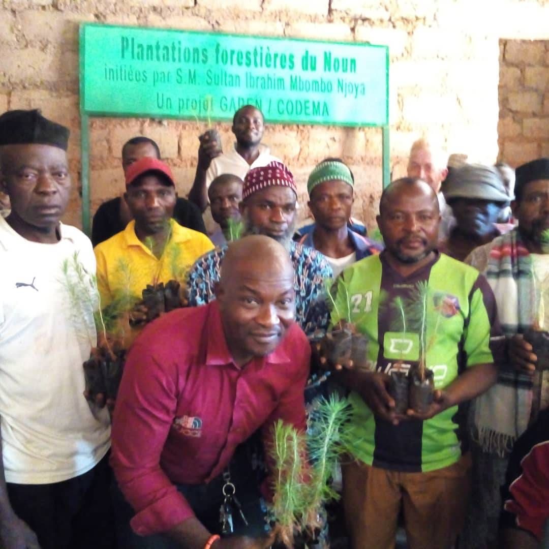 Sinds 2023 heb ik samen met Tieme en Ibrahim de Nederlandse Stichting Plantations Forestières du Noun opgericht. Tieme kende ik nog van de Wageningse studie én de Tropenbos-stage, en Ibrahim is de zoon van een ander Nederlands/Kameroens echtpaar bij wie wij in Foumban regelmatig te gast waren geweest. Via de stichting hoop ik CODEMA op meer professionele wijze te kunnen ondersteunen met het beheer van het herbebossings-project van toen, maar bovendien wil de stichting ook andere dorpen de kans bieden zo’n project te realiseren. Hierbij richt de stichting zich op dorpen in het Kameroense Noun-departement vanwege de goede contacten die we nog altijd hebben met de Sultan van die regio.